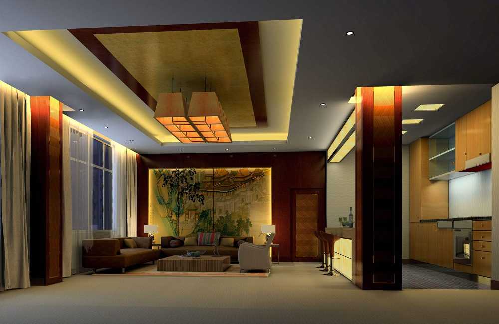 在中式酒店客廳的客廳設計上采用現代的裝飾手法和家具,結合古典中式的裝飾元素,來呈現亦古亦今的空間氛圍。