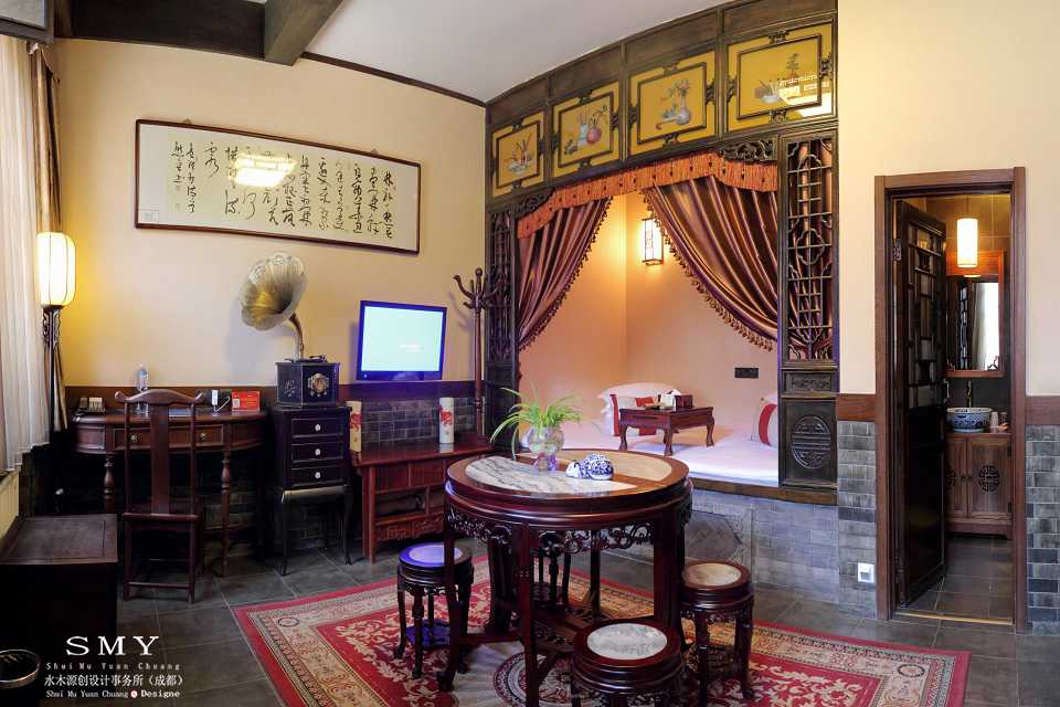 德陽民宿酒店設計中地域民俗風格酒店設計的主題,選擇最具地方代表性、獨特性和歷史情節來表現出酒店的獨特的民俗文化風格,充分的利用自然資源創造的條件,完美的將當地的民俗文化精髓體現出來。酒店主題需要設計出充滿個性的文化造型,不同于其他民俗酒店客棧的風格設計,將其與之相隔開來.展現出獨具匠心的民俗酒店風情,才能使顧客產生濃厚的興趣,心中不由而然的生出一種想要深入了解的欲望之心。