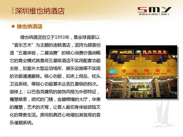 首先,我們來看看這家成立于上世紀90年代的維也納酒店,酒店選擇在深圳這座現代化科技技術含量一流的一線城市當中,這對于當時的商家來說敏銳的眼光和卓越的智慧是不可多見的。