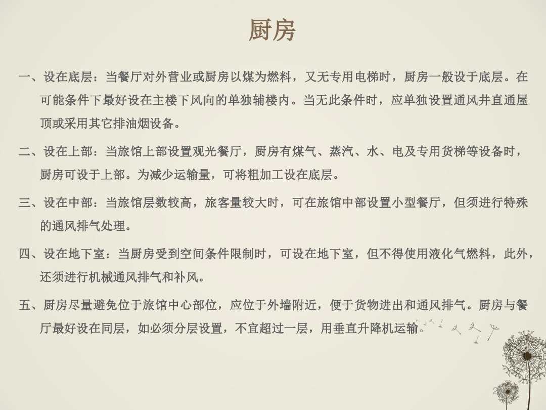 廚房是為住客提供飲食的重要之地,把廚房安排設(shè)計在哪個具體的位置,需要根據(jù)實際來進行具體的分析,哪個位置合理,既可以更加方便的服務(wù)于消費者,又不影響酒店的日常運作。