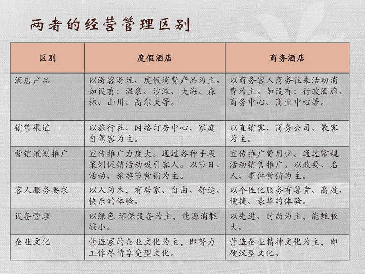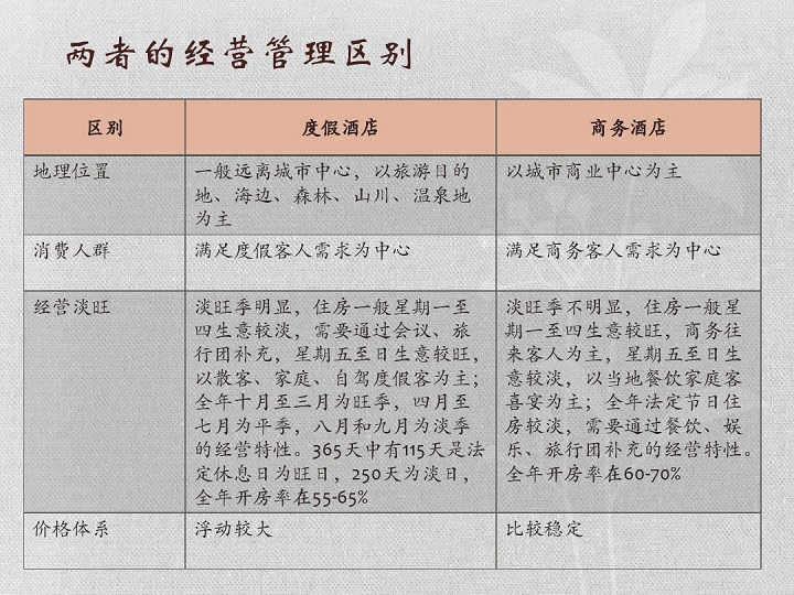商務(wù)酒店與度假酒店兩者間的區(qū)別關(guān)系