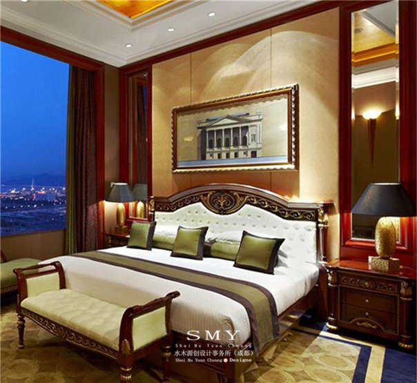 房間的開間在3.7m左右時,性價比(建筑成本與房間功能之比)zui佳。全世界的城市商務酒店多半個世紀以來差不多都是沿用美國假日酒店創始人凱蒙斯?威爾森設計的客房標準形式(我們俗稱標準間),這種房間一般凈寬3.7米左右,可在墻的一邊安放兩張單人床(Twin Room)或者一張雙人床(King Room,在另一面可擺放寫字臺,行李架,小酒吧,還有較為充裕的過道。客人躺在床上觀看放在寫字臺上的電視時,觀賞的角度和距離正合適。當時的“標準間”一般是7.2m7.5m柱網,層高為3m,面積為26平方米,房間內的家具十一件,衛生間的設施是三大件、六小件。這個標準從國外到國內持續了許多年,堪稱經典。