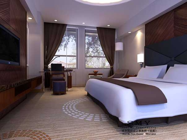 客房空間環境以舒適方便、溫馨恬靜為前提,材料選擇以質地平和、簡潔淡雅的自然材料為主,也可以點綴適量的玻璃、金屬和高分子類材料,顯示時代氣息。