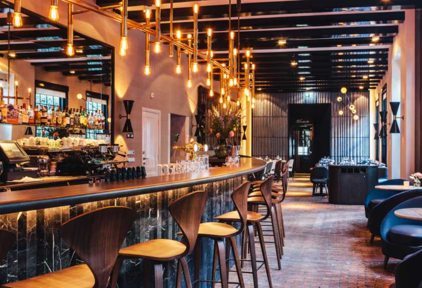 一般來說,地面選色應(yīng)遵循中和的原則,即在色澤上最好采用中等明亮度。因酒吧具有特殊性,因此其地面若有花紋等圖色做襯,并配置以中性色調(diào)與陰暗色調(diào)相結(jié)合的方式拼排,則能夠有效提升消費者的視覺效果。
