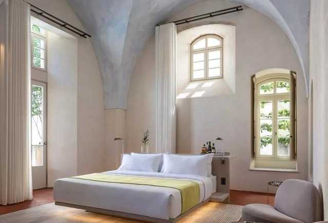 這家酒店是由修道院和醫(yī)院改造而來,設(shè)計師John Pawson在翻新的同時保留了原始建筑中極具特色的傳統(tǒng)元素,并融入了阿拉伯和新羅馬式的建筑風(fēng)格。整體軟裝融合了多種色彩,家具的使用也與建筑內(nèi)的色調(diào)相匹配,明暗之間無縫過渡,各個細(xì)節(jié)的點綴也很恰到好處。