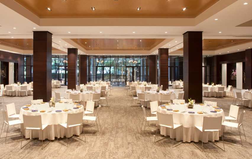 在對宴會廳進行設計時,應該注重氣氛的隆重性。在這個過程中,可以將圓形多層疊級的天花和大型水晶吊燈進行有效結合,進而彰顯宴會廳富麗堂皇的氣質。同時,為了達到劇場效果,也可以對舞臺一側進行一些特殊設計,比如可以通過歐式線條進行收邊等,進而滿足集體活動的需要。另外,也需要對一些比較空的墻面進行些裝飾,比如放置一些屏風、通過射燈進行照射等,進而活躍大廳氣氛,增強大廳的動感。