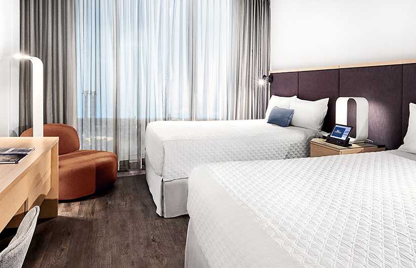 而在快捷酒店的客房區域,要特別注意氛圍的營造和舒適度的體現。快捷酒店裝飾設計不同于星級酒店等以奢華為主的裝飾設計形式,快捷酒店的客房區域需要以盡可能低的成本突出人性化、時尚化和舒適的特點,在客房區域的設計中就表現為裝修材料的選擇上。材料的選擇根據裝修風格可以分為以下幾類:①簡約現代類;②傳統中式風。簡約現代類主要包括復合地板、大理石、石膏、復合板等應 用在現代風的裝修設計中的常見材料。這些材料使用在搭建和裝飾前臺、標間、走廊等位置。這樣可以給人營造一種溫馨、舒適、功能全、安全系數高的優美的室內環境,工期短還能構建出時尚感。在特殊的無窗客房中應用中式建筑材料.,主要以大理石、竹、木為主,搭配以黑白的色彩以及窗外的造景,給人營造一種步入中式庭院的感覺。