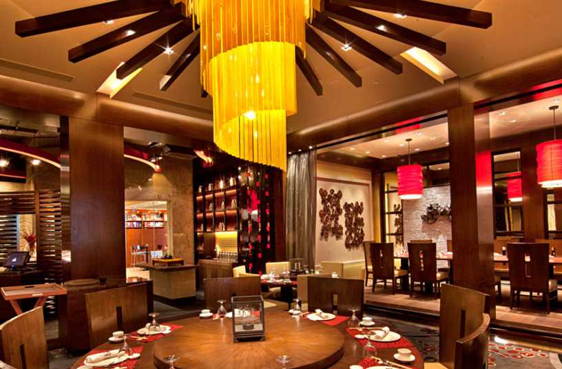 中國的飲食文化在源遠流長的中國文化中有著豐厚的底蘊,因此,餐廳的設計更要加強中式元素的運用,燈飾上可以選用中式吊燈或者宮燈,尤其在現代裝飾工藝不斷進步的趨勢下,燈光的色彩可以隨時間轉換和客人意愿進行調整,達到渲染氣氛的良好效果;能移動的幕式屏風不但具有裝飾的美觀性,還能達成有效的空間分隔分。餐廳的整體風格要統一于 酒店的主題風格。
