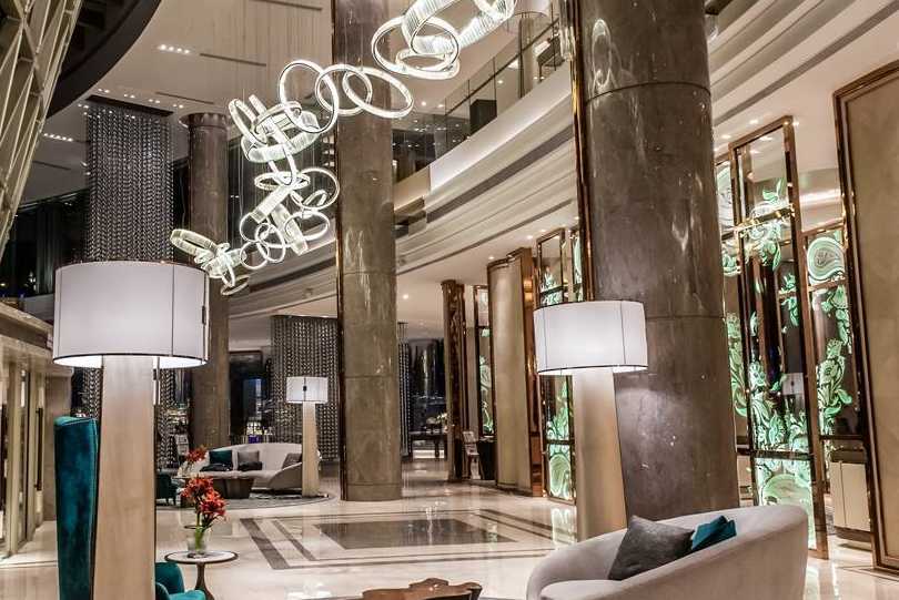 照明設計要想達到理想的空間渲染效果,就必須根據酒店內不同空間使用功能提供不同照度和光的表達方式。在五星級酒店設計中,照明設計區間大致可分為:酒店大堂區域照明、酒店餐飲區域照明、酒店客房區域照明、酒店辦公會議區域照明,這四個主要照明設計重點區域。