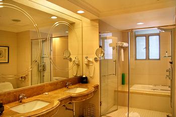浴缸是否保留常常成為業主糾結的問題,大多數客人不愿意使用浴缸,浴缸本身也帶來荷載增大,投入增大,做房時間延長等諸多不利因素,除非是酒店的級別與客房的檔次要求配備浴缸,否則完全可以用精致的淋浴間代替,節省空間,減少投入。另外,無論是否使用浴缸,帶花灑的淋浴區的墻面材料選擇時,要避免不易清潔的材料,磨砂或亞光質地都要慎用,浴室防滑很重要。