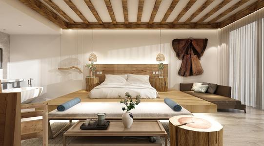 客房是為客人提供休息服務(wù)的地方,在設(shè)計(jì)時(shí)主要應(yīng)在兩個(gè)方面入手。一是要注重設(shè)計(jì)成本的控制,可以考慮采用新舊對(duì)比的方式,保留一部分原有材料。二就是要注重實(shí)用性,不必要進(jìn)行過(guò)多復(fù)雜的設(shè)計(jì),干凈整潔即可。比如簡(jiǎn)簡(jiǎn)單單的白墻,搭配一些讓人舒適的木飾面材料讓空間既浪漫又溫馨。