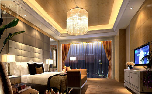 專業的星級酒店設計師要結合燈具特點及功能性元素,創造獨一無二的酒店空間設計感。照明方案中不妨采用“間接”照明手法,即見光不見燈。不同的功能區進行差別化的燈光處理,將星級酒店空間個性化,將環境特性化。
