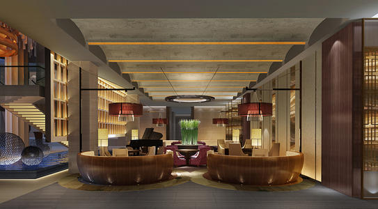 商務酒店的大廳是一個商務酒店的門面,因此商務酒店設計大廳的裝修是很重要的一個環節,客人一進來引入眼簾的就是大廳了,而最凸顯大廳裝修的要算大廳的吊頂了。