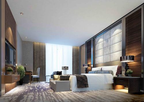 空間的尺度和比例,首先要滿足功能的尺度要求,滿足人使用的尺度要求,其次是人的精神需求。商務(wù)酒店設(shè)計(jì)的對(duì)比包括空間體量、形狀、層高、開(kāi)敞與封閉等方面的對(duì)比,除了功能原因之外,通過(guò)空間的高低、層次和變化,空間層次的豐富,避免空間過(guò)于平淡。