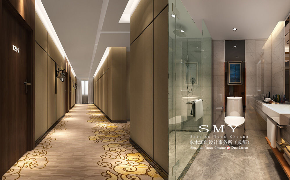 3、洗浴區是根據酒店級別來設置不同的洗浴設備,級別高的我們設計浴缸;一般的我們用精致的淋浴房代替,因為這樣衛生方便;不過總統套房,豪華套房這些房必配浴缸,所以要視情況而定,我一般情況就是設計精致淋浴房,一般酒店經營方都會接受;玻璃淋浴房一般都是10mm鋼化玻璃(也叫安全玻璃),門邊要設計膠條,防水滲出,在畫圖中我們要有所說明,淋浴房的地面要做防滑處理,雖說我們在地上鋪了防滑地磚,但是在實際中,我們還增加了帶有按磨功能的防滑墊。