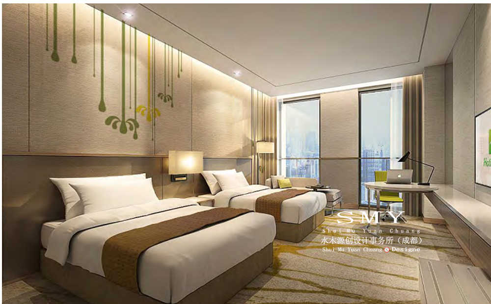 客房是所有酒店的最終焦點,優雅,精良的設計設計會使每間客房和浴室給疲倦的客人酒店的感覺,在客房的設計中利用精美的藝術品,手工裝飾品及墻紙和家具,設立了客房和浴室的基調。它們自然的色彩及不同的物體表面肌理效果,使室內彌漫著一種溫馨,家具和合理擺放能幫助客人自由的交流與工作,并可滿足不知懈怠埋頭工作的客人的心靈需要。