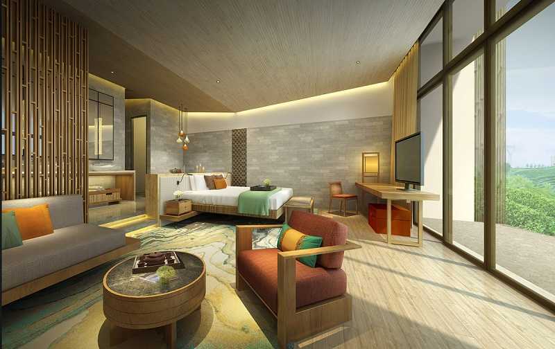休息加娛樂一體的套房,簡練的明式家具充分迎合內斂質樸的設計風格,古典中透漏著寧靜典雅,沒有絲毫呆板。另外單間公寓式的客房設計延續了時尚簡約的設計風格,不采用過多元素的裝飾,運用大道至簡的哲學思想,還原空間美的原始追求。