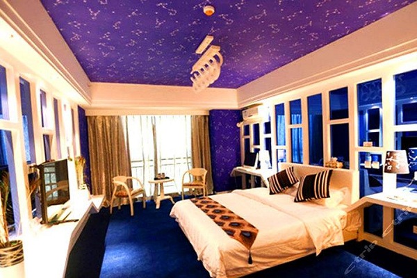 再來是住房,宜賓度假酒店為顧客可提供度假情侶風的臥房采用主紫色背景營造夢幻浪漫的氣息。深夜住房安靜祥,和用具一律定制睡床超大面積針織面料手感飽滿,彈性十足。