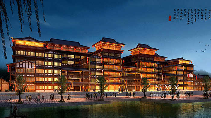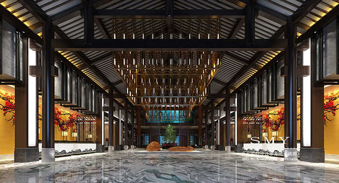 酒店分為水療區、配套區、客房區。建筑以最樸質的中國古代建筑為基調,不做過多的修飾,整體簡潔大方,精致的做工使建筑在簡潔的天體下又精致,使得整個環境即可遠觀亦可褻玩。是整個空間體現著一種“禪”:少即是多!將就點上升到了哲學意義的層次,將人們帶離塵世,走向內心。